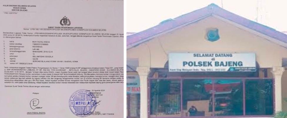 Korban yang diketahui bernama Muh Fadhil Rasya ini menyampaikan kejadian tersebut kepada pihak Keluarganya, usai menyampaikan kejadian tersebut, selanjutnya fadhil bersama pihak keluarganya melaporkan kejadiannya keposek bajeng, Kamis (22/8/24)
