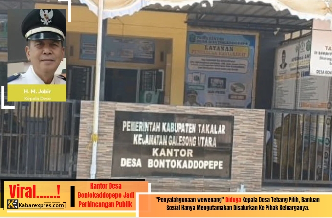 Takalar– Kabarexpres.com– Baru-baru ini Kepala desa bontokaddopepe menjadi perbincangan publik khususnya warga setempat yang sangat kecewa dan cukup resah terhadap kinerjanya yang kerap tebang pilih terkait Bantuan sosial (Bansos) di wilayah desa Bontokaddopepe kec,Galesong Utara Kab,Takalar.