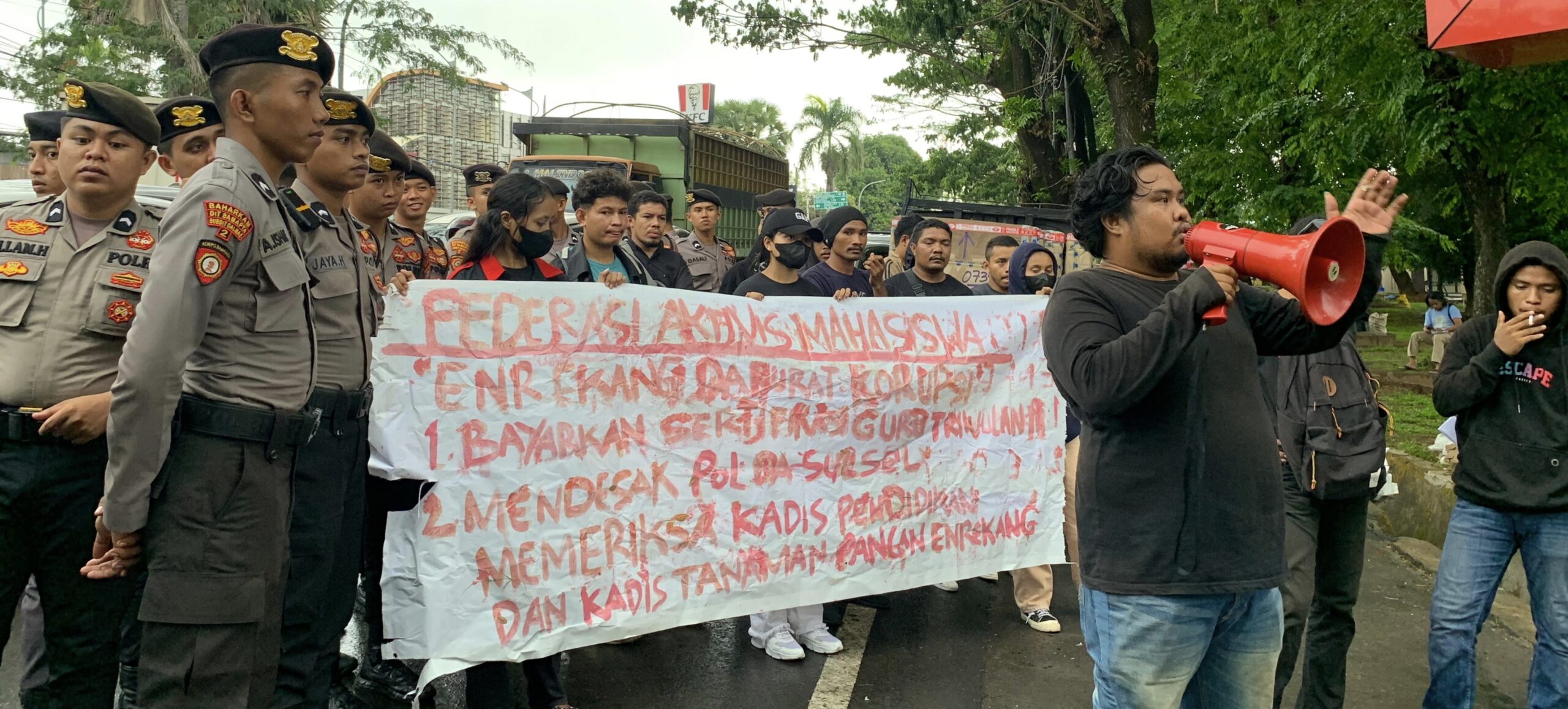 Federasi Aktivis Mahasiswa Aksi Didepan Polda Sulsel, Diduga Ada Dua Kadis Kab.Enrekang Terindikasi Korupsi Dana DAK Dan DAU