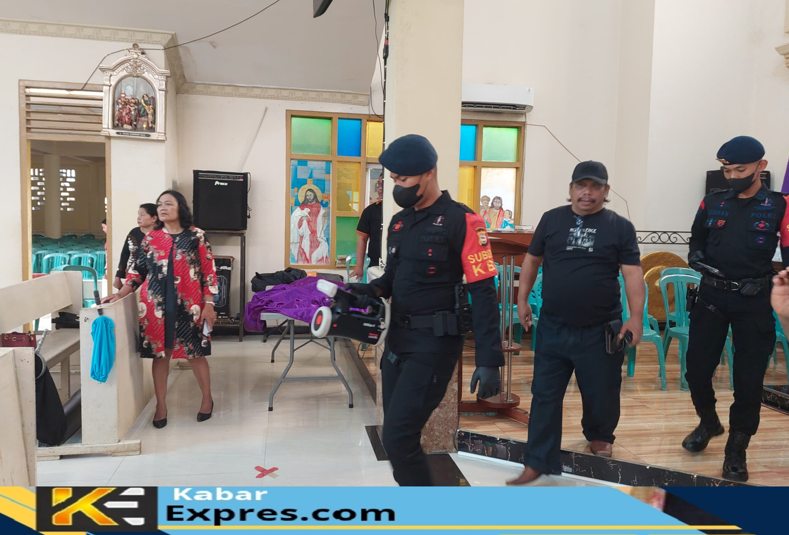 Gowa|Kabarexpres.comDalam rangka memastikan situasi kamtibmas tetap kondusif selama pelaksanaan ibadah Jumat Agung, Polres Gowa melaksanakan sterilisasi dan pemantauan di Gereja Katolik Simon Petrus Gembala yang terletak di Jalan Mangka Dg Bombong Kelurahan Manggarupi Kecamatan Somba Opu Kabupaten Gowa, Jum’at (18/4/2025).