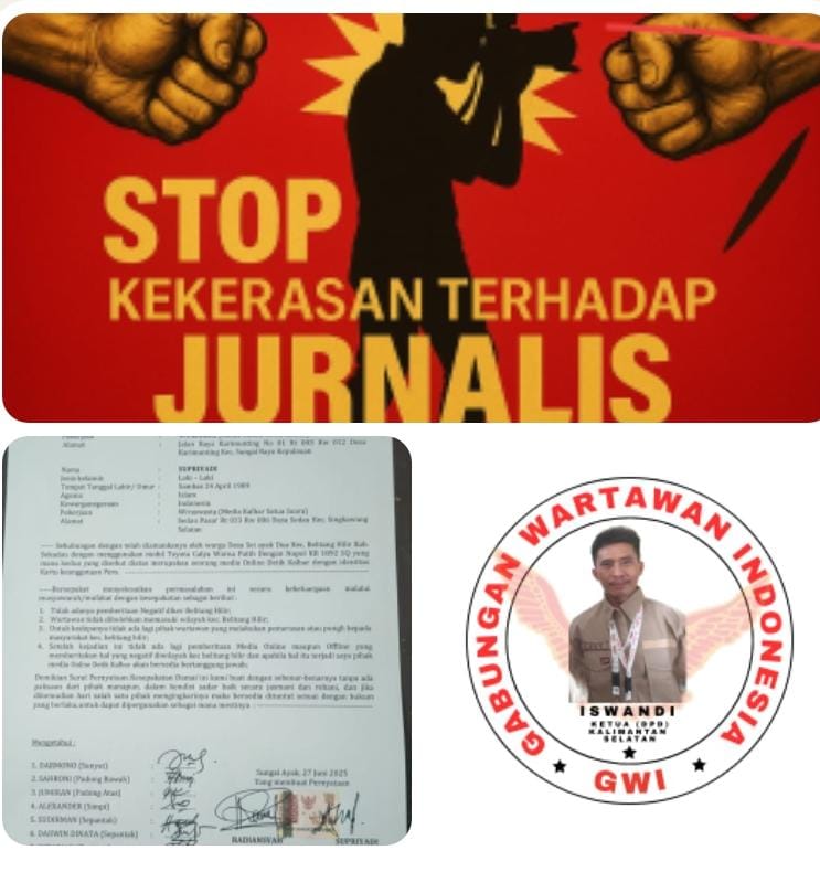 Ketua DPD Gwi Kalsel mengecam keras atas tindakan oknum Aparat kepolisian yang ada di polsek,diduga membekingi tambang emas,pasalnya bukan melindungi dua wartawan yang mendapatkan kekerasan oleh preman ,bukannya di proses preman tersebut malah melakukan