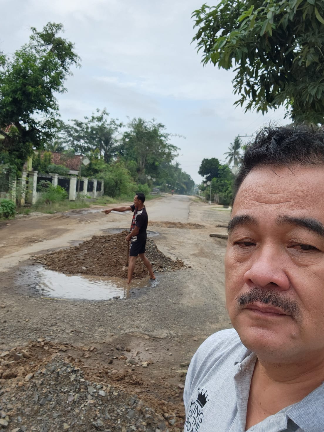 Pagi buta ketua Dewan perwakilan Rakyat Daerah (DPRD) kabupaten Tulang Bawang Barat Lampung Busroni.SH bersama puluhan warga Perbaiki ruas jalan rusak parah akibat kenderaan bermuatan sagu milik perusahaan bumi waras (BW) yang beroperasi di wilayah pakuan agung muara sungkai lampung Utara