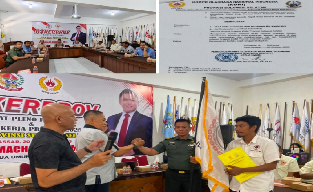 Makassar | KABAR EXPRES-— Komite Olahraga Nasional Indonesia (KONI) Provinsi Sulawesi Selatan memberikan apresiasi kepada Indonesian Mixed Martial Arts (IBCA MMA) Sulawesi Selatan dalam acara Rapat Kerja Provinsi (Rakerprov) dan Rapat Pleno Pengurus KONI Sulsel Tahun 2025.